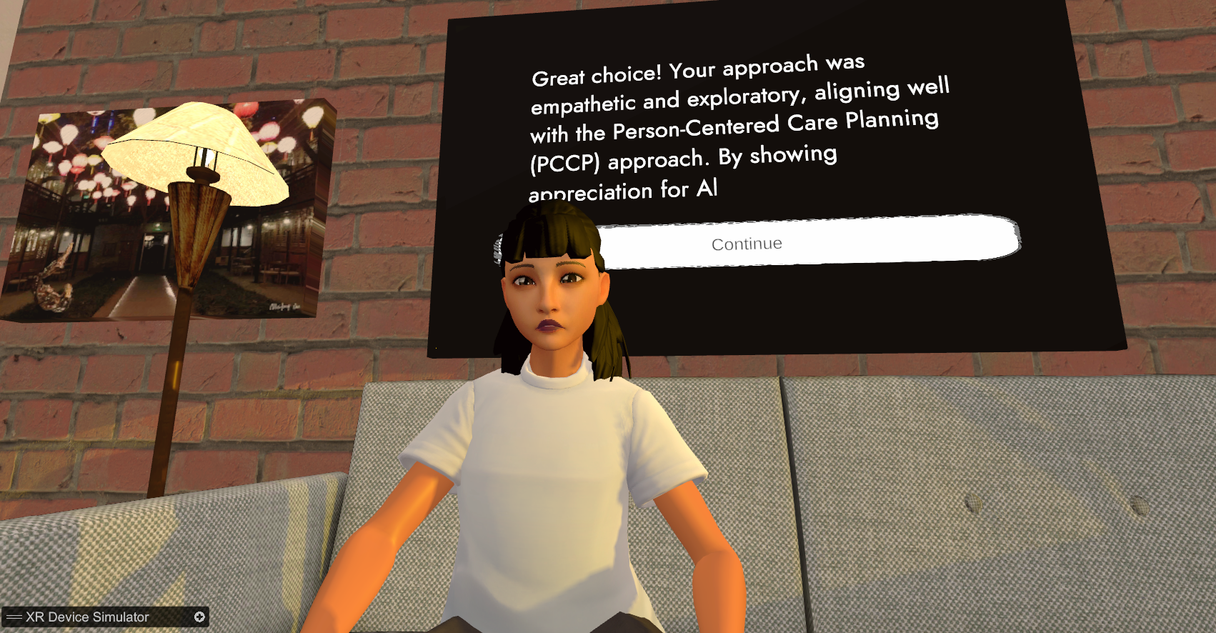 Together, we did the ground-up design work and iterated on the needed features as requested by clinicians and researchers. The simulation was developed in an active lab with ongoing effectiveness studies.